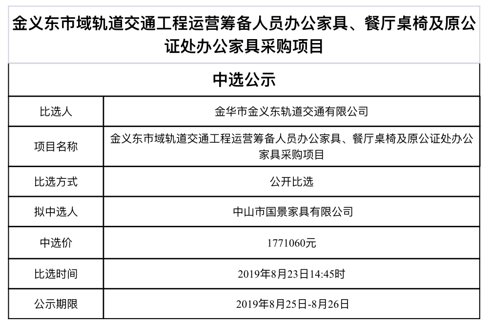 金華市軌道交通控股集團物業(yè)管理服務(wù)有限公司2025-2026年度勞務(wù)派遣人員工作服采購項目中標候選人公示
