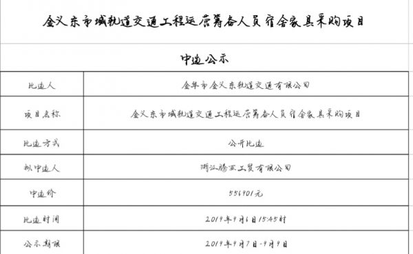 金華市軌道交通控股集團物業(yè)管理服務有限公司2025-2026年度勞務派遣人員工作服采購項目中標候選人公示