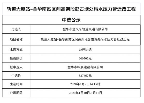 金華-義烏-東陽市域軌道交通工程軌道、公交乘車碼二碼融合AFC系統(tǒng)集成項目中標候選人公示
