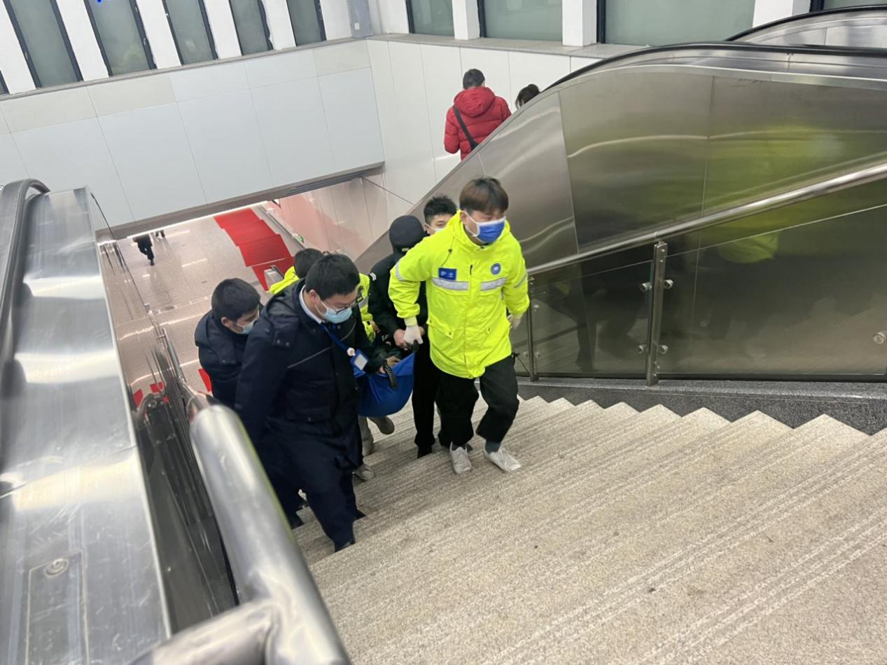 2月6日下午,秦塘站內(nèi)一名乘客突發(fā)嚴(yán)重疾病。車站工作人員立即攜帶急救箱到達(dá)現(xiàn)場設(shè)置圍擋,了解乘客既有病史后聯(lián)系“120”,隨后開辟站內(nèi)搶救通道,爭奪“黃金搶救時間”。
