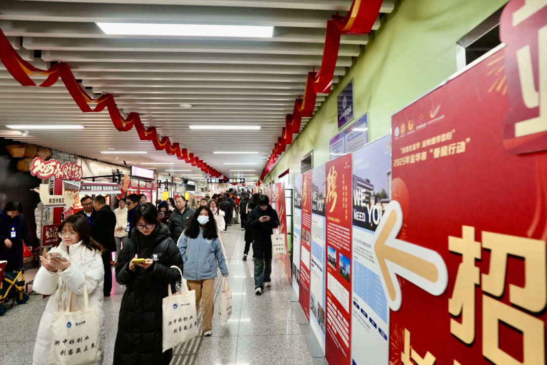 為給返鄉(xiāng)過年的新老金華人提供更優(yōu)質(zhì)的暖心服務(wù),1月17日上午,2025年金華市“春風(fēng)行動”啟動儀式暨“就業(yè)在金華 金軌伴您歸”活動在軌道交通金華站順利舉行。金華市副市長莊凌飛,市人力社保局、市總工會、團(tuán)市委、市文聯(lián)、市軌道交通集團(tuán)相關(guān)領(lǐng)導(dǎo)出席活動。